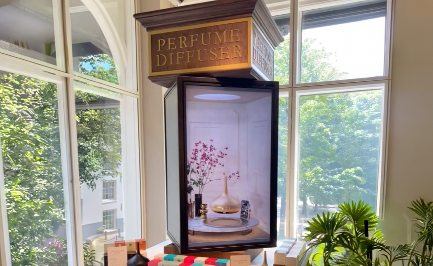 A rotating carousel where content, motion and perspective merge into one calm, focused moment. Four screens form a seamless 3D illusion, revealing itself only from the right angle. Subtle choreography guides attention, creating a refined, sensory experience that transforms retail into something quietly captivating.